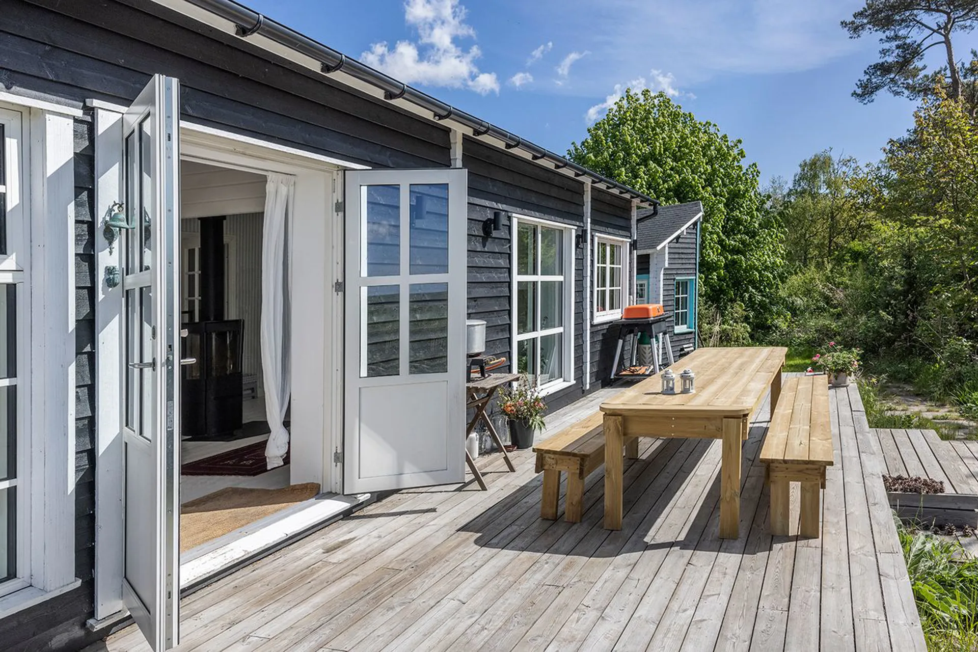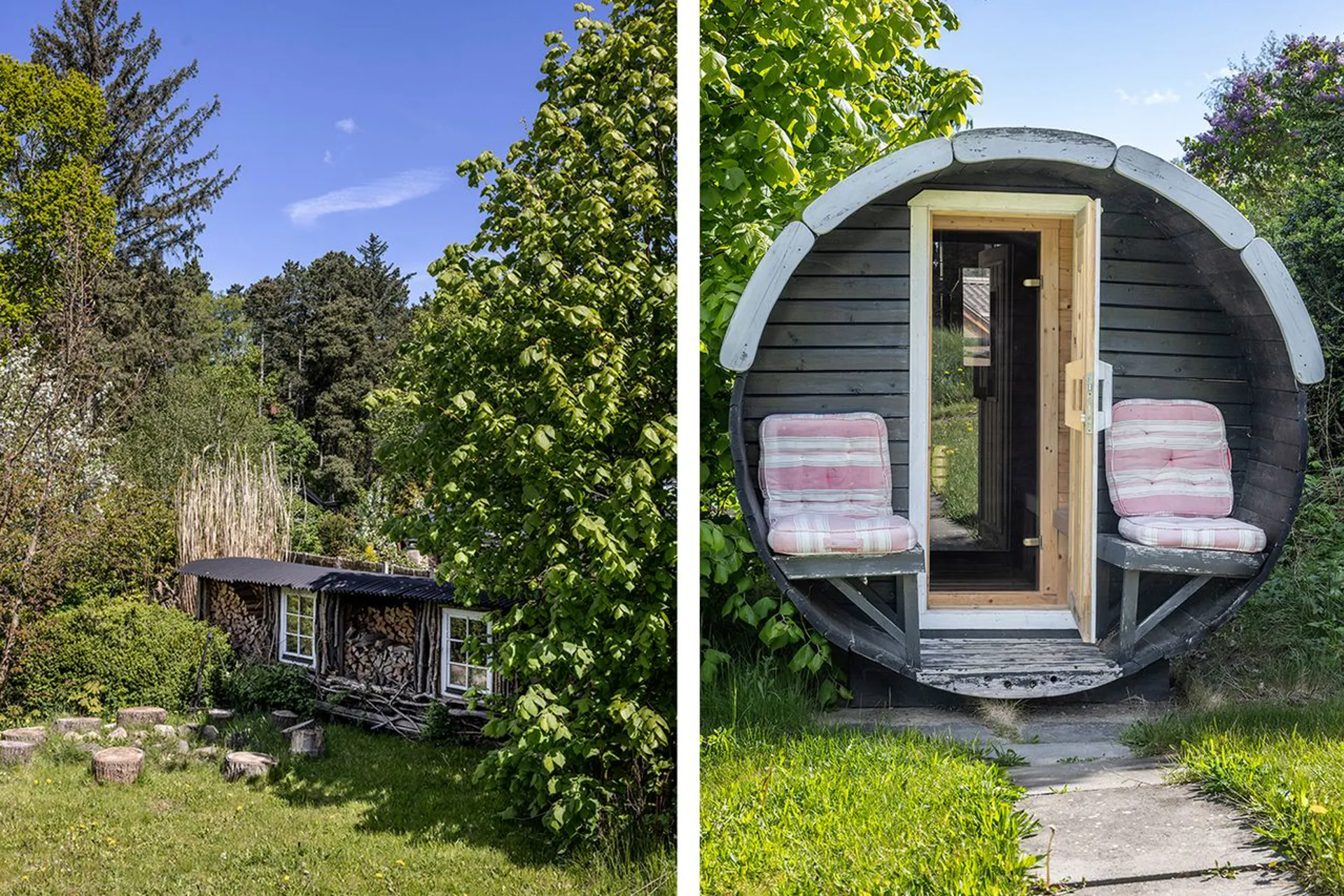 I alt fire smukt arrangerede bygninger, der hver især er hyggeligt indrettet, med tillæg af sauna og overdækning til brænde.