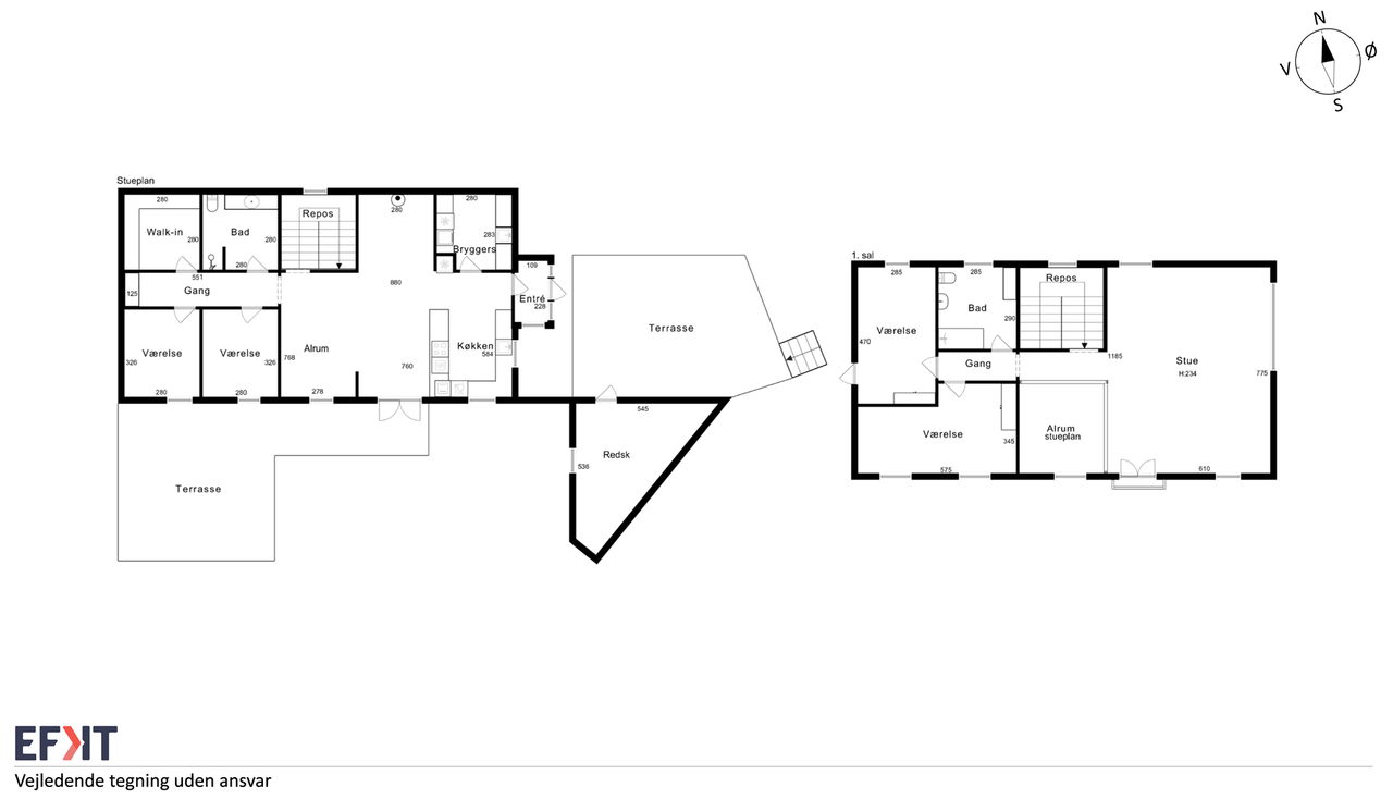 Husets stueetage er indrettet omkring et stort køkken-alrum. Her er plads til både store middagsselskaber og hverdagslivets små øjeblikke. Desuden to skønne soveværelser, walk-in-closet, bryggers og et smagfuldt indrettet badeværelse. Førstesalen rummer en mere tilbagetrukket stue med den skønneste udsigt over Espegærde samt en afskærmet og privat forældreafdeling med eget badeværelse og mulighed for walk-in-closet.