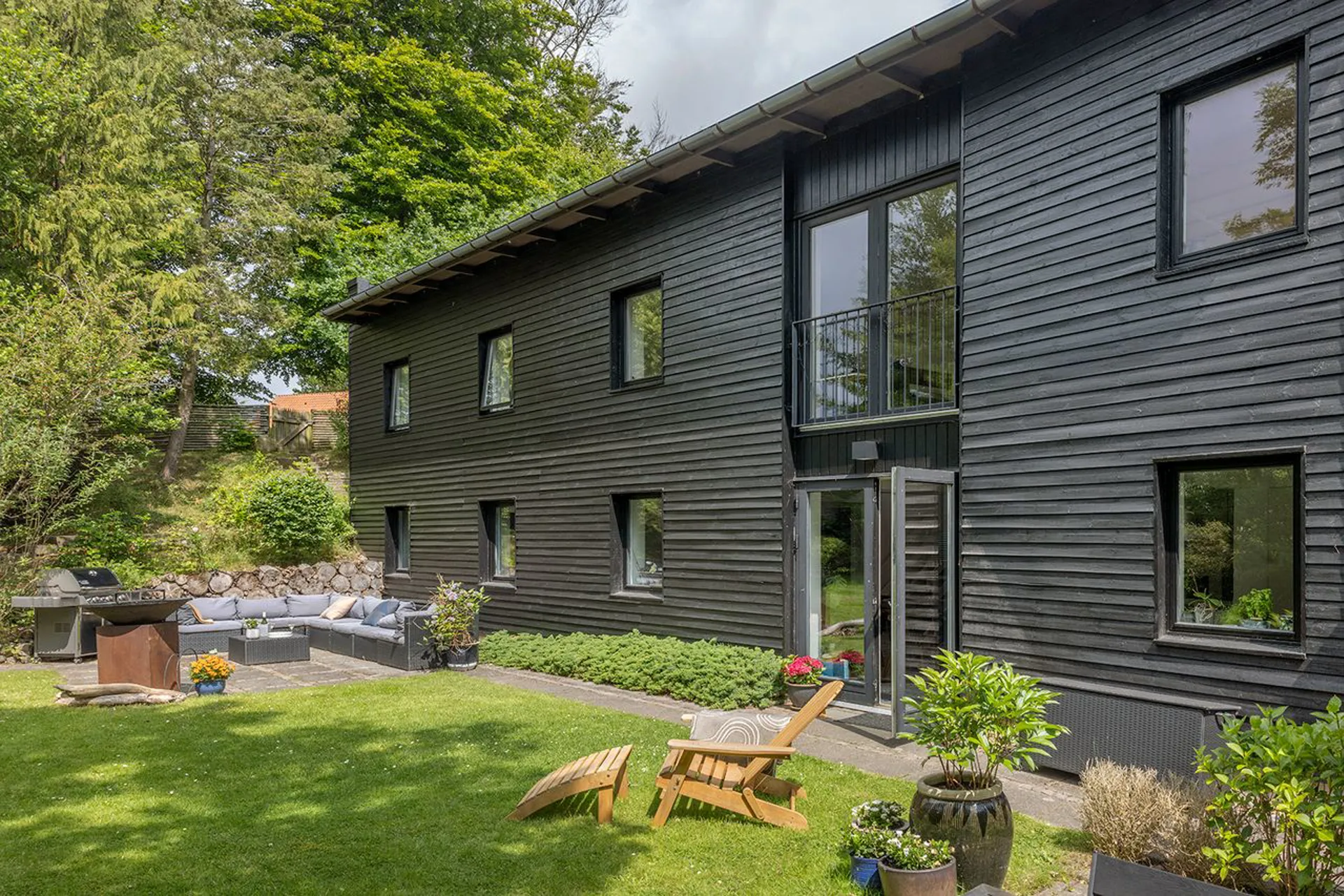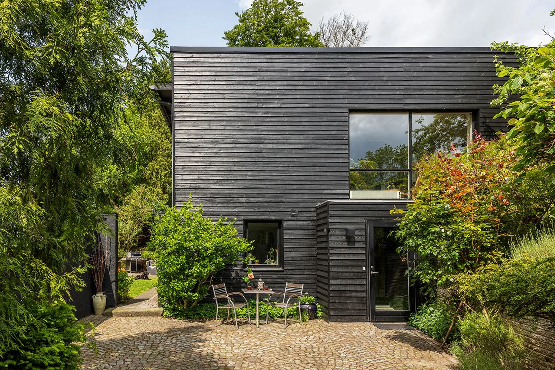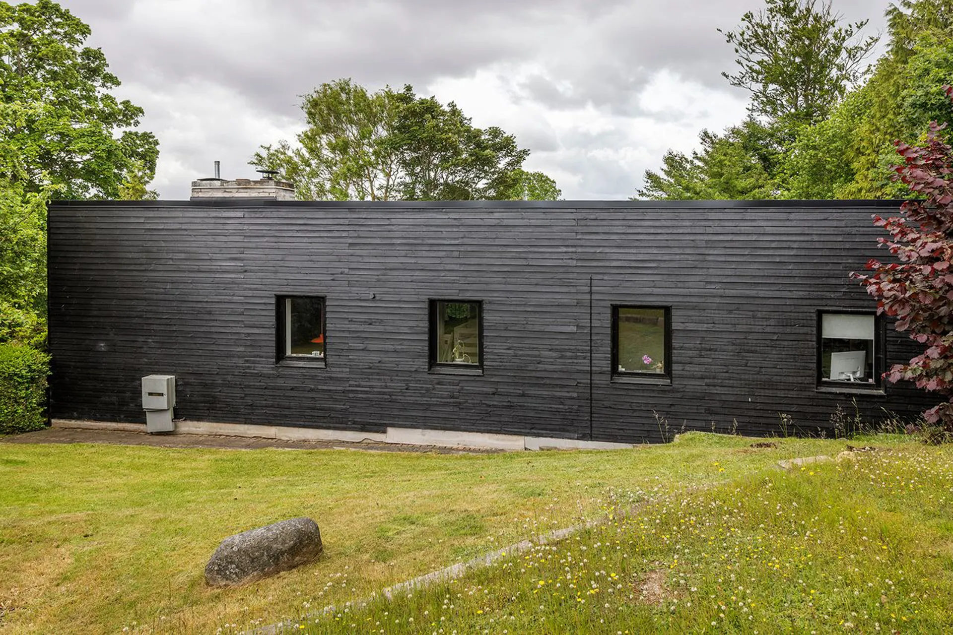 Træbeklædningen giver huset et råt, næsten skulpturelt udtryk, mens de store vinduespartier skaber transparens til omgivelserne. Det er et hus, der balancerer fortid og nutid, hvor den funktionalistiske epoke tydeligt har været inspirationskilde til de mere nutidige arkitektoniske fortolkninger.