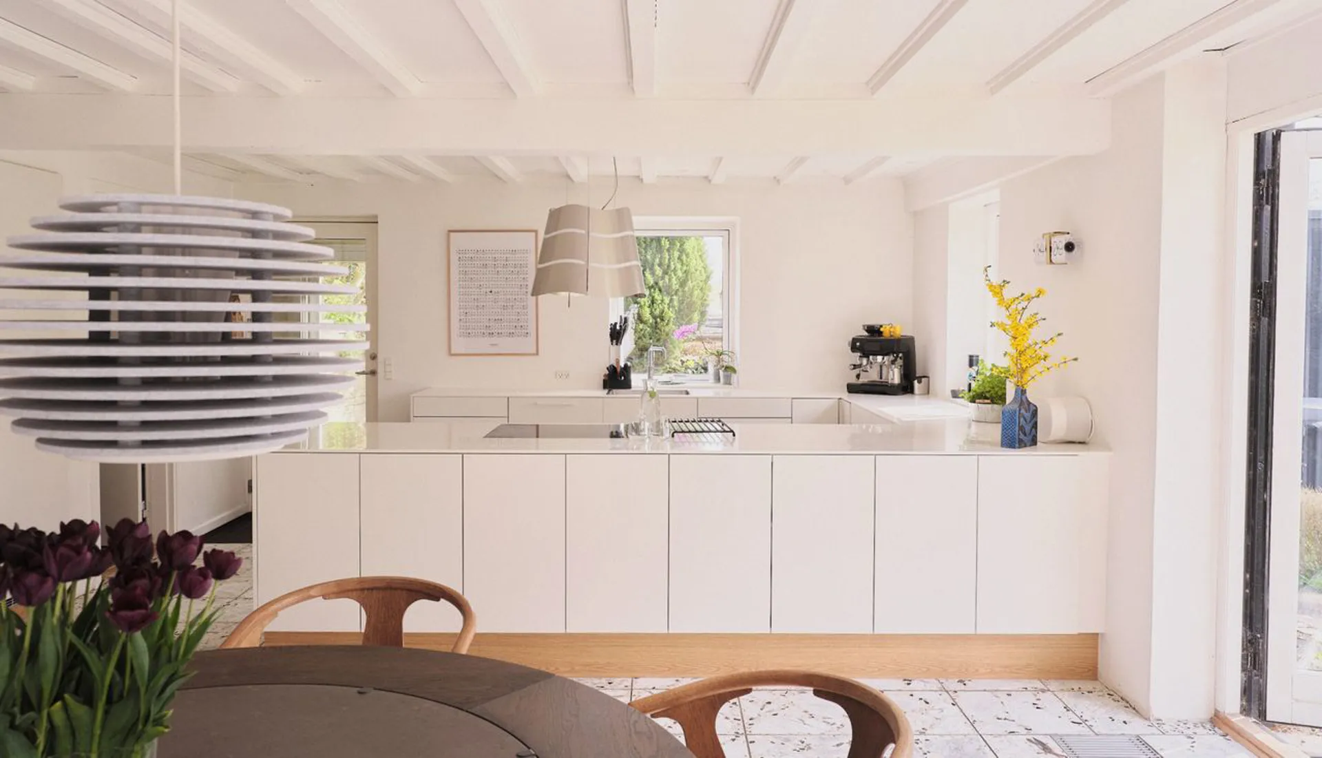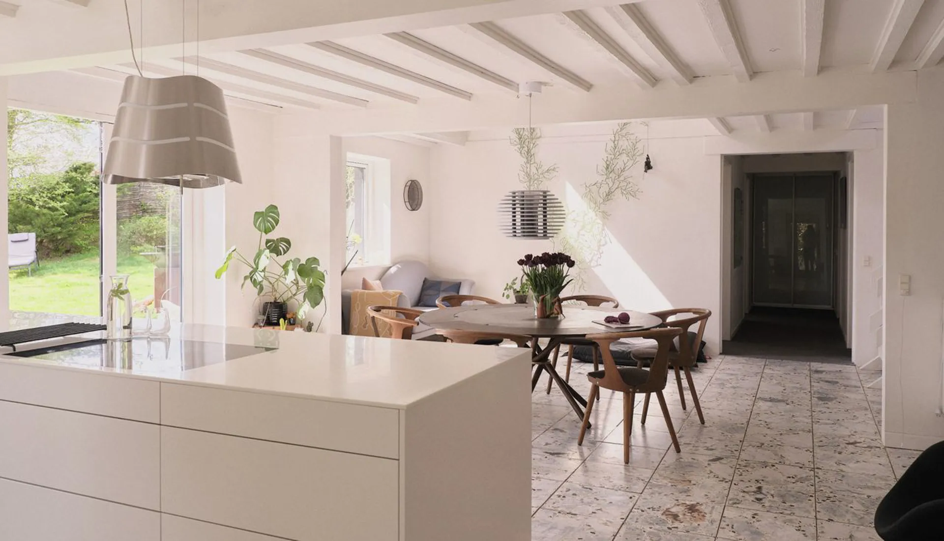 Dette sted tør være sig selv i kvarteret med sit eget moderne, arkitektoniske formsprog, der leger med balancen mellem husets sorte facade og det lyse interiørdesign. Et elegant greb, der frembringer en fin lethed, hvor lys, luft og rumlighed går op i en højere enhed.