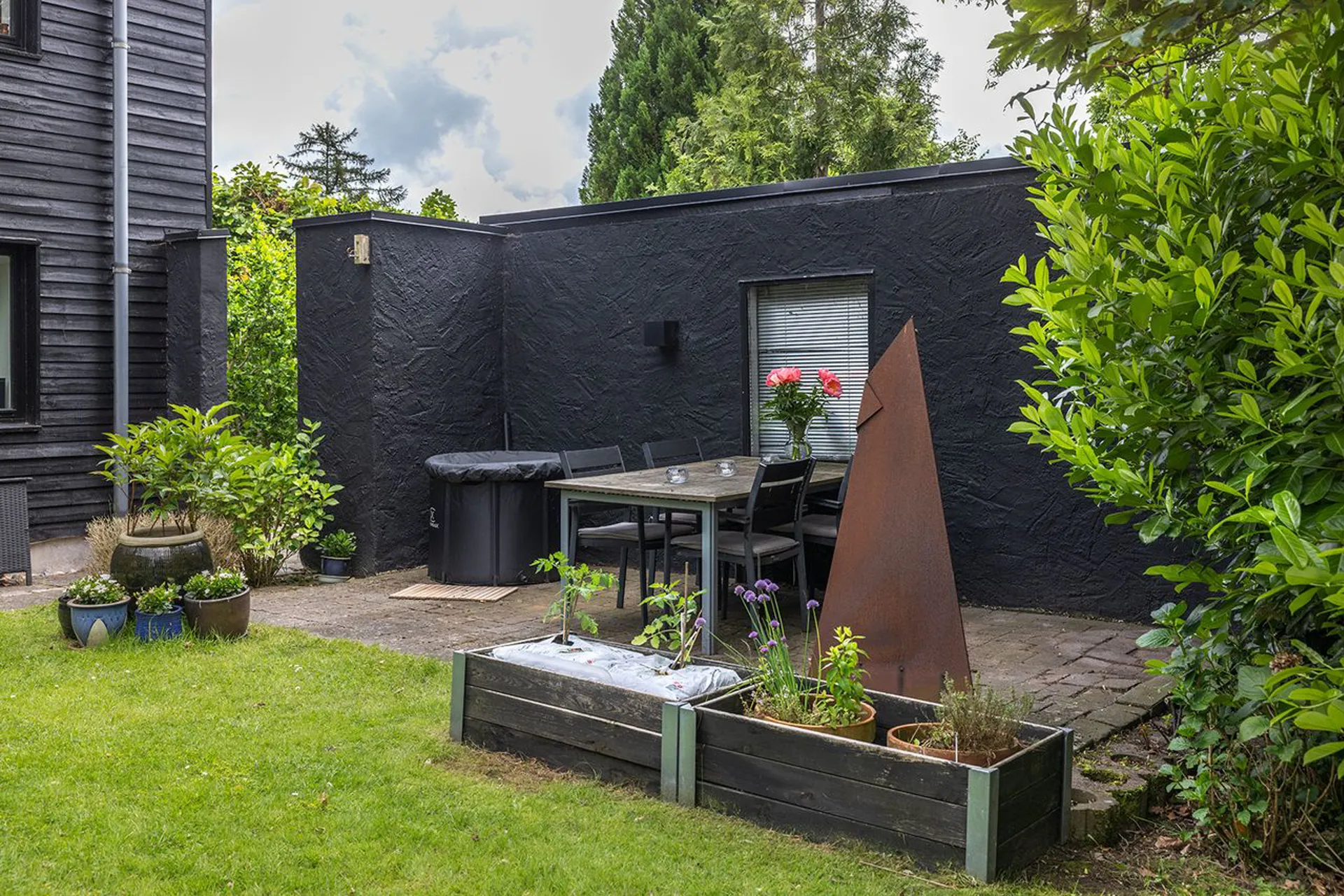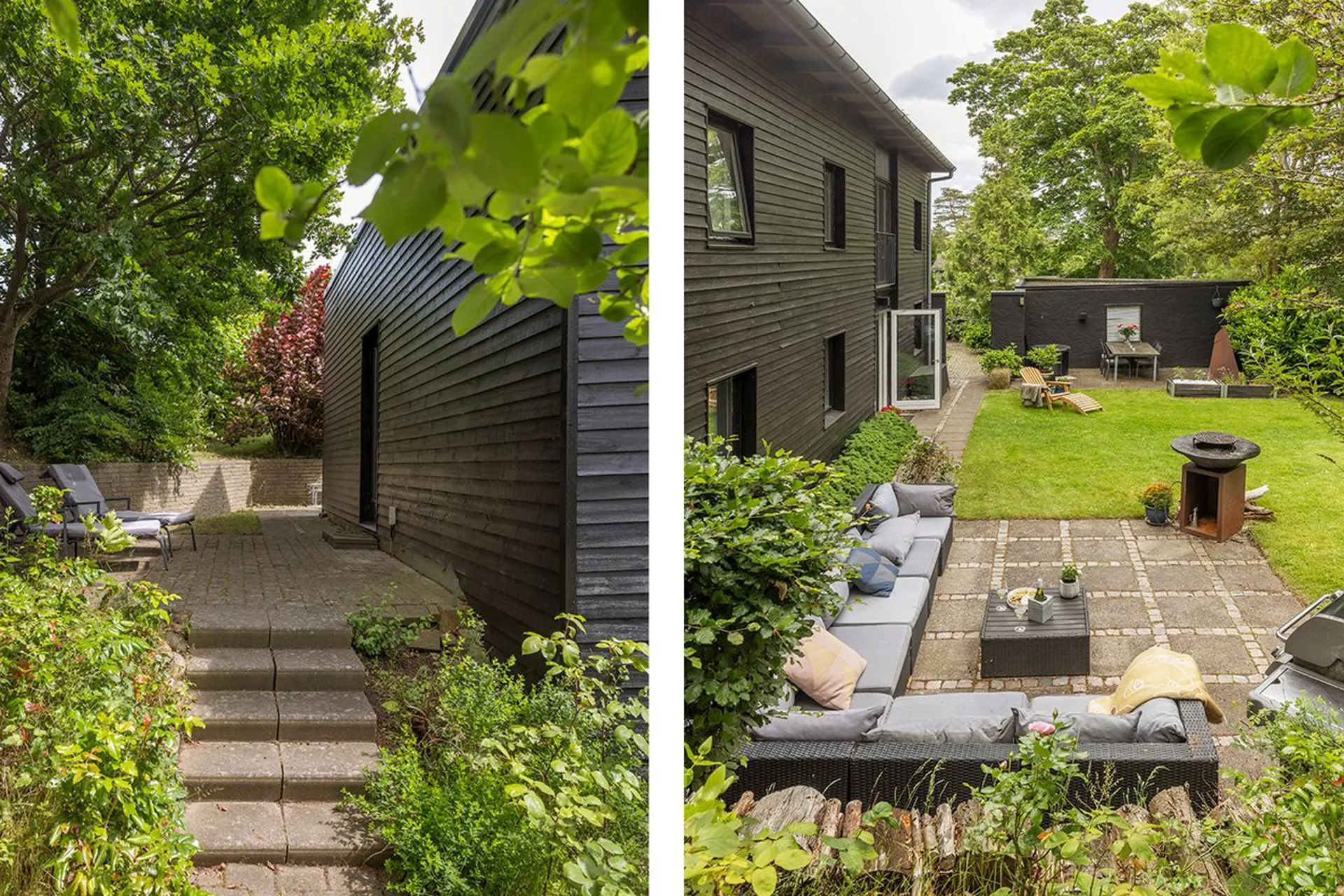 Fra det store alrum er der udgang til et stort, sydvendt terrasseområde, der går i ét med den smukt anlagte have. Et stisystem fører direkte til Egebæksvang Skov, og nærområdet tilbyder skoler, forskellige sportsfaciliteter og alverdens gode indkøbsmuligheder.