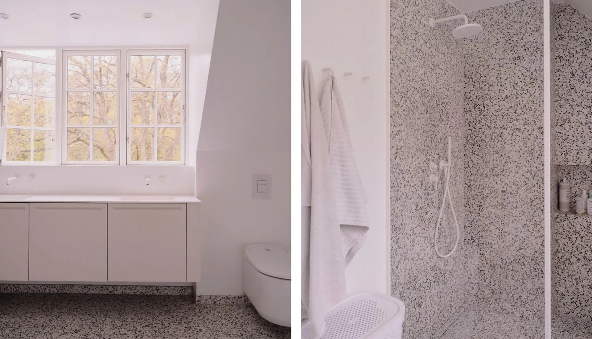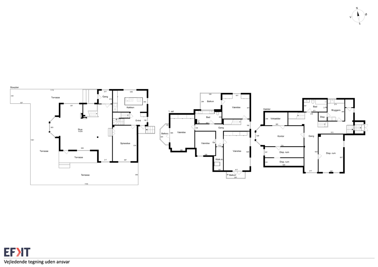 Stueetagens stuer en suite har udgang til de omkringliggende terrasseområder og taler vel med rimelighed sit eget sprog. 1. salen er indrettet med fire skønne soveværelser, hvor der fra tre af dem er udgang til privat altan eller balkon og sammen deler de et badeværelse med brus.