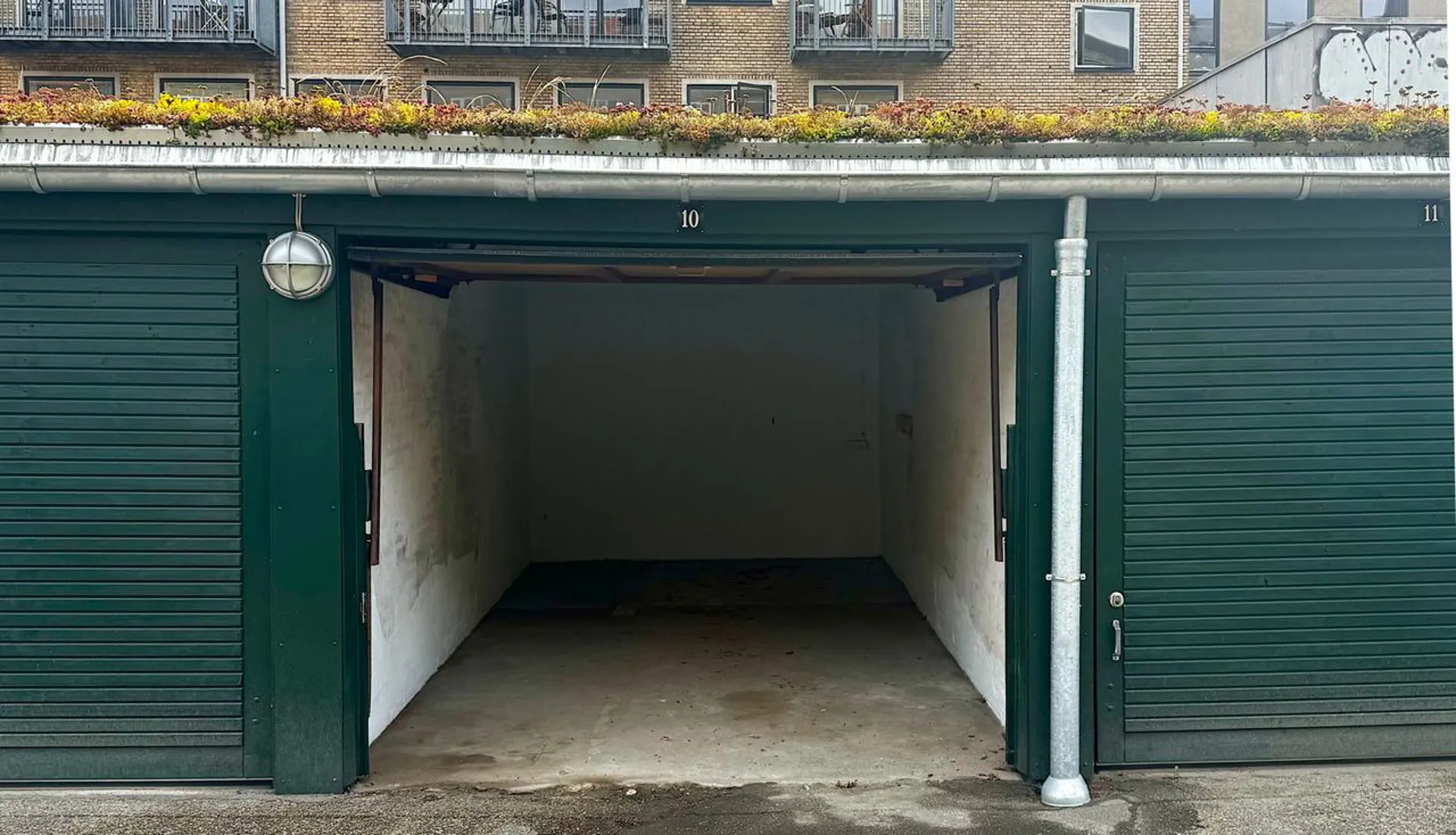 Renoveret garage med vippeport, beliggende i en muret bygning centralt i det attraktive Fuglebakkekvarter. Garagen er placeret i et stort, lukket og trygt gårdmiljø med nem adgang via asfalteret indkørsel.