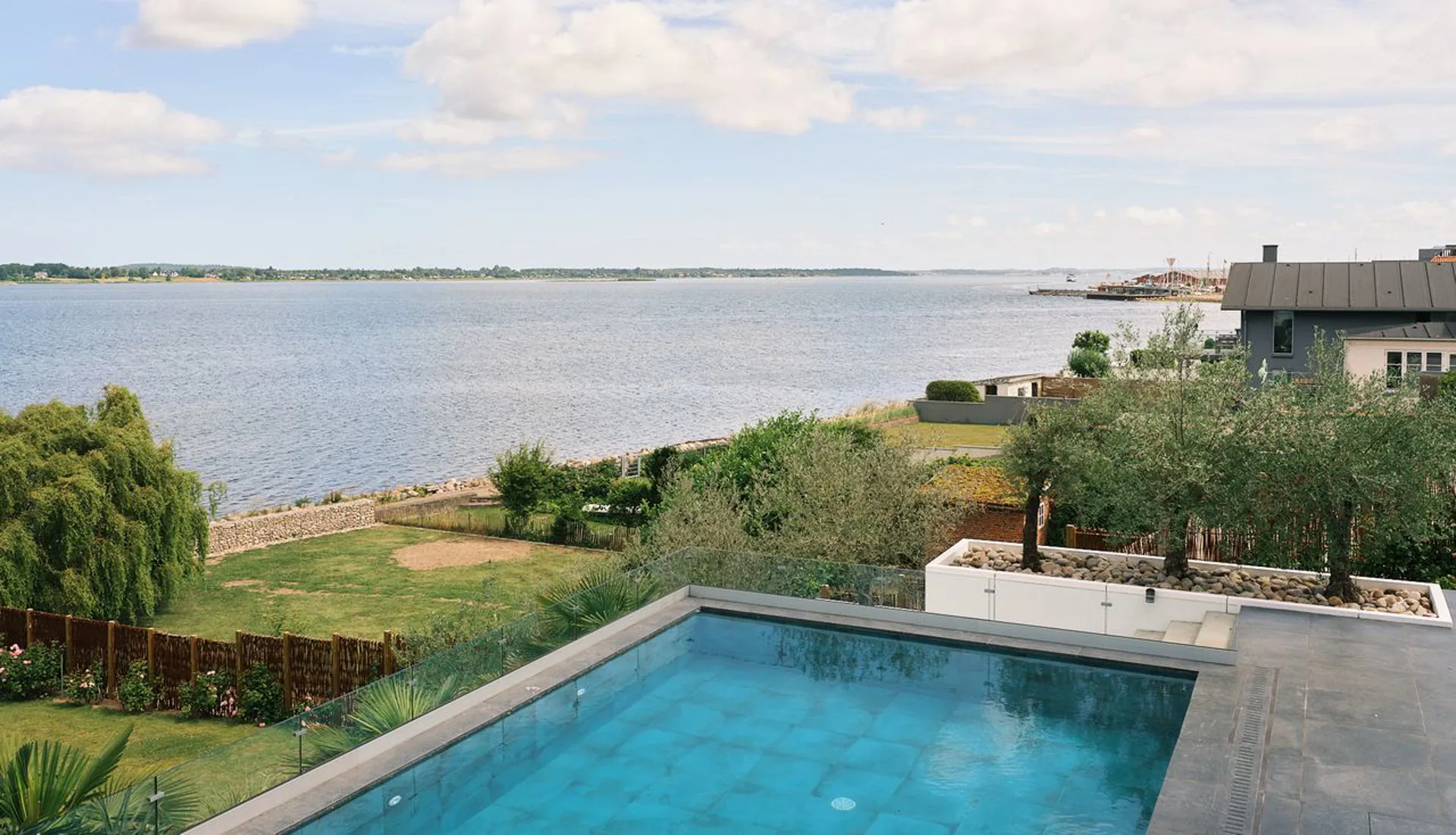 Og tænk engang, at der fra denne, i sig selv, enestående villa er udgang til et lige så enestående haverum med solbeskinnet terrasseområder, pool, læpladser, udsigt, lys og nærhed. LYS og NÆRHED. Tænk over, hvor magiske det er. Tænk engang, at det kan være sådan et sted, som man måske aldrig før har hørt om. For disse villaer, der ligger så godt lige her, dem er der få der kender, men uendeligt mange, som drømmer om. Sådan er det tit med det eventyrlige – at man drømmer om noget, man ikke nødvendigvis ved, hvor man skal finde.