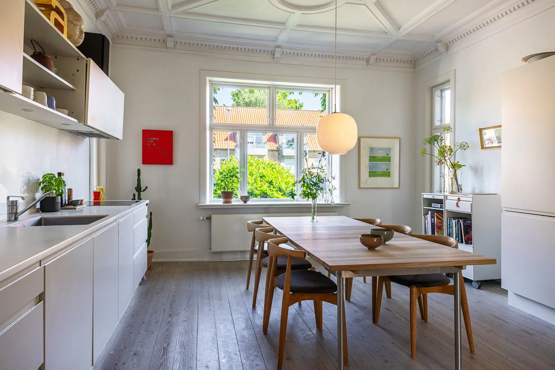 Lad blomsterne blomstre og lad livet leves. Sådan er det her – fordi man kan. Og fordi dette livsskønne leverum, lever sit eget liv. Væk fra forfængeligheden og ind i hjertet. Der hvor tingene virkelig har betydning. Der, hvor man kan mærke følelserne og festerne i husets murværk, i dets smukke originale stuklofter, trukket glas i de originale vinduer, træpaneler og alt det andet interiør, som vidner om forgangstidens eksorbitante arkitekturforståelse.