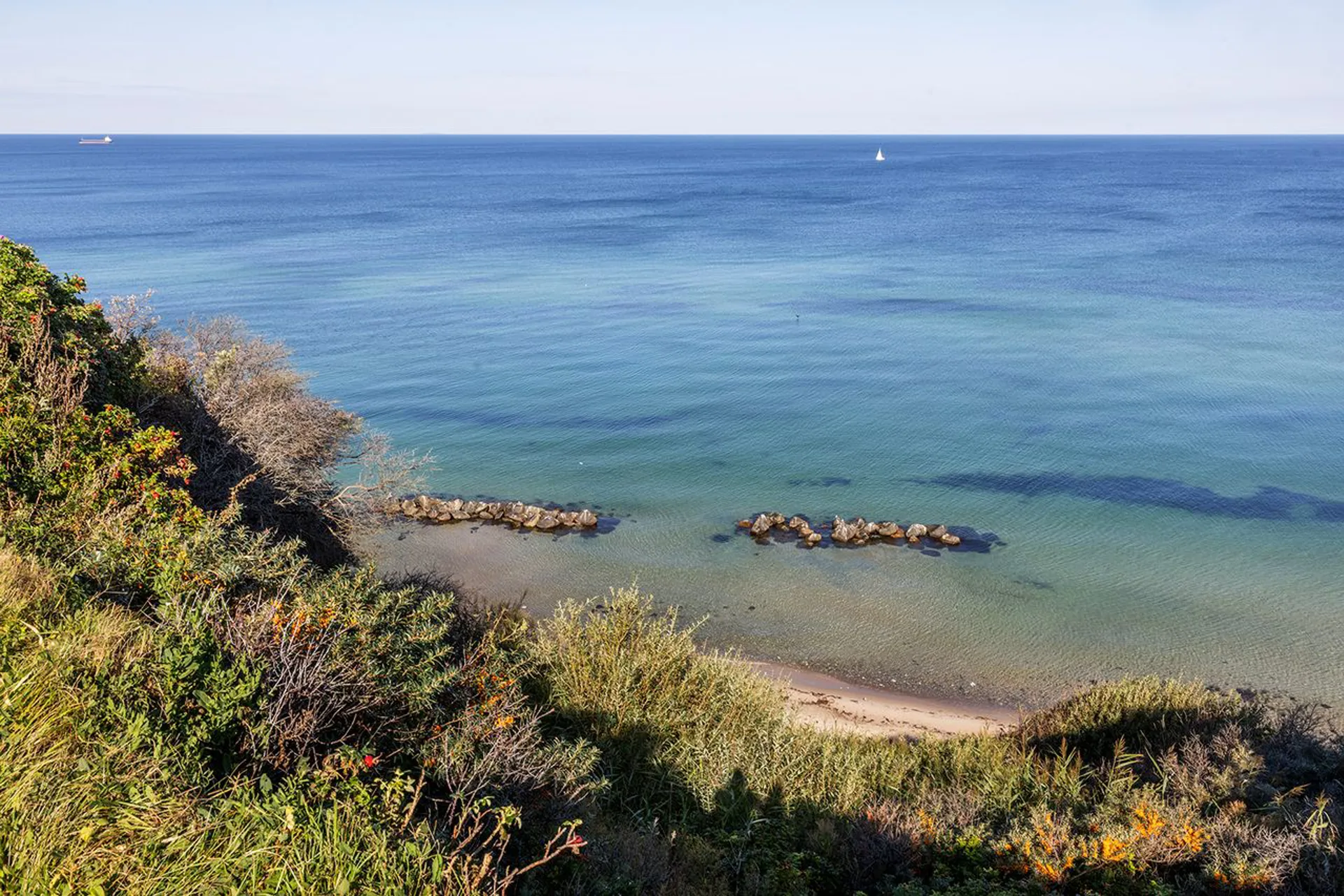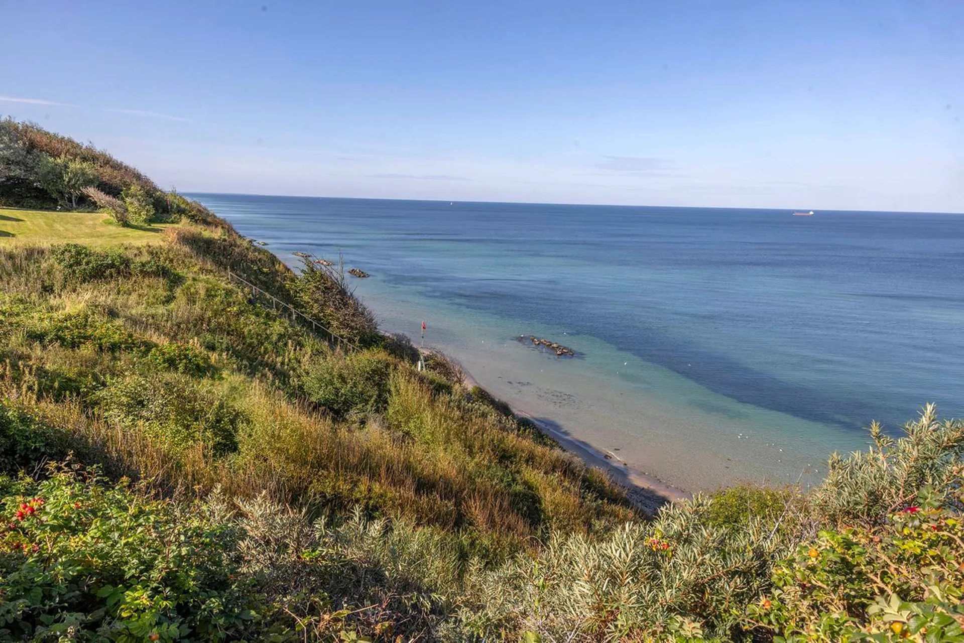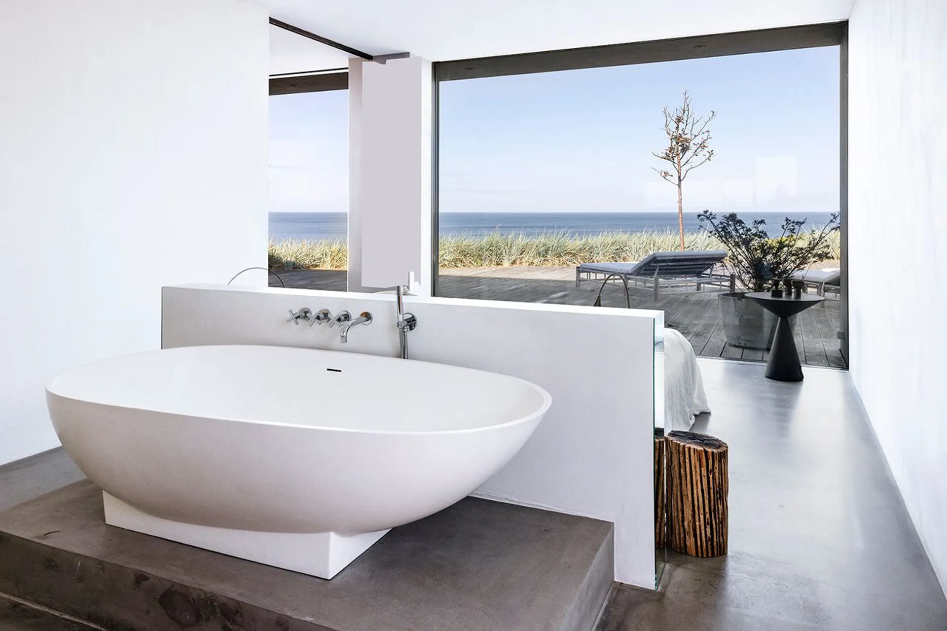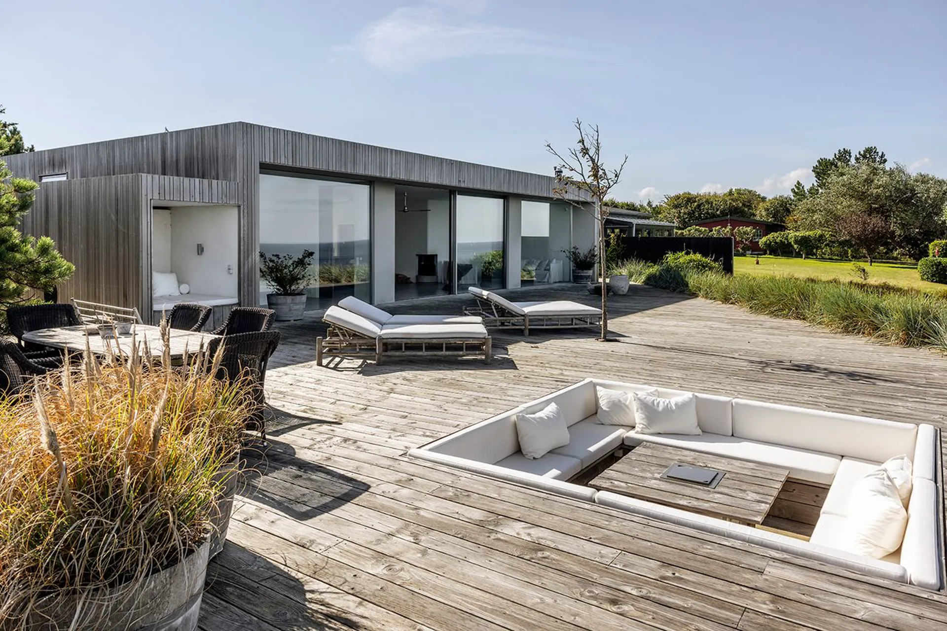Ekstravagant luksus i 1. række til en af Nordsjællands bedste badestrande. Måske den bedste – i hvert fald en af de mest spektakulære. Luksus fra øverste hylde, med udsigt så langt øjet rækker ud mod horisonten – der, hvor himmel og hav mødes.