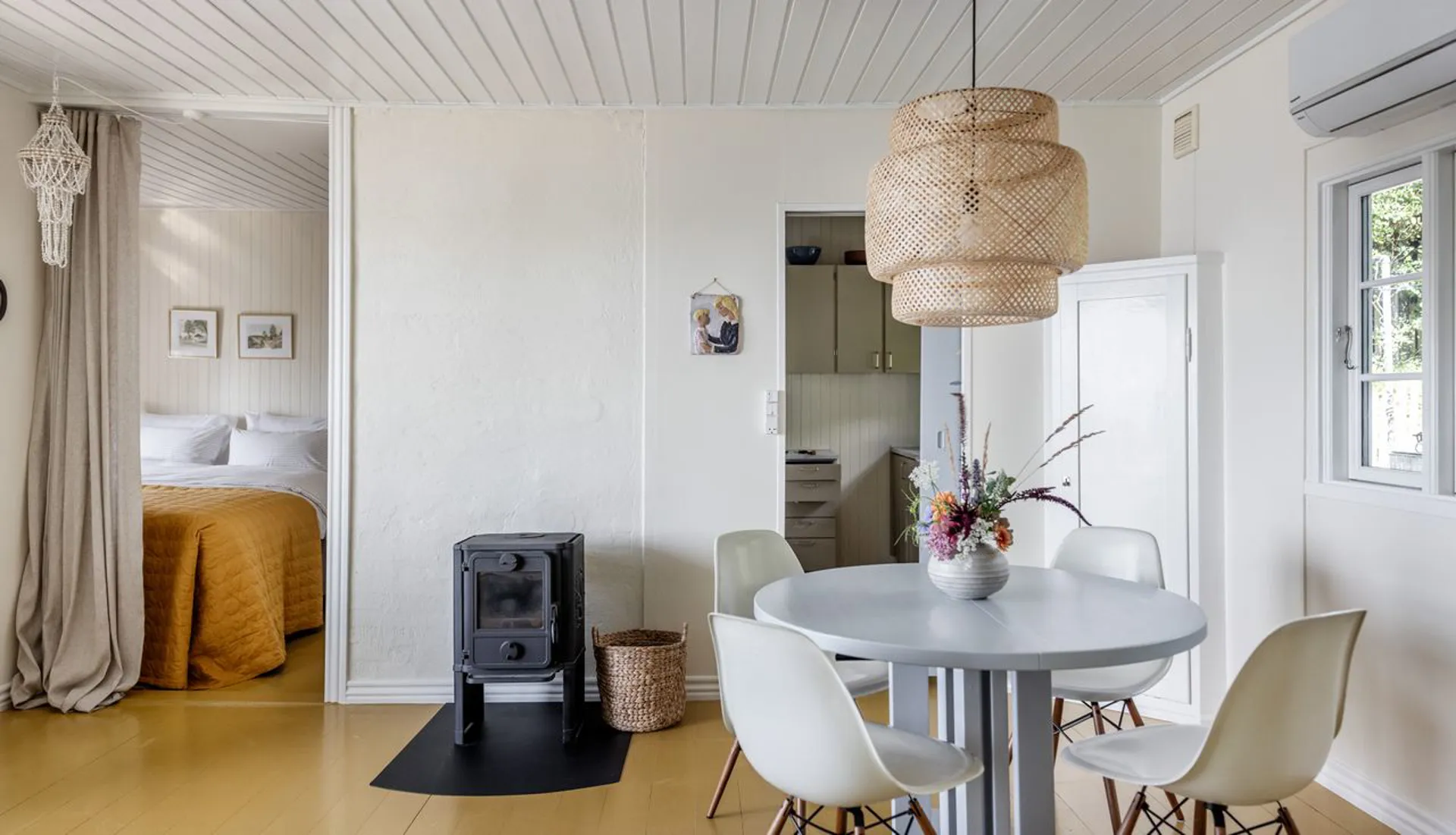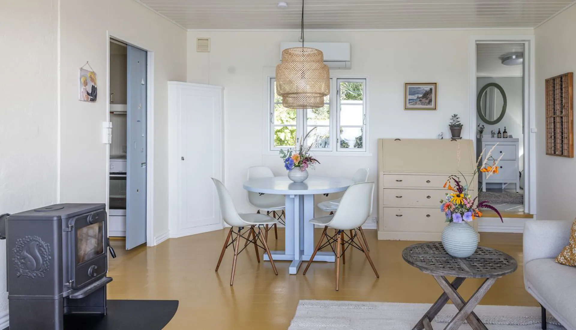 I vandkanten til Kalundborg Fjord – lige ved Røsnæs, lige midt i et eventyr om et ægte fristed. Sommerhuset er sydvendt og klimaet her på Røsnæs hører til det tørreste og mest solrige i Danmark. Faktisk så ligger dette vidunderlige sommerhus lige der i vandkanten til Kalundborg Fjord. Lille i størrelse – men enormt i herlighedsværdi. Det er så fantastisk et sted, at man ikke kan forestille sig en bedre ugeneret beliggenhed ud til vandet, end dette hus.