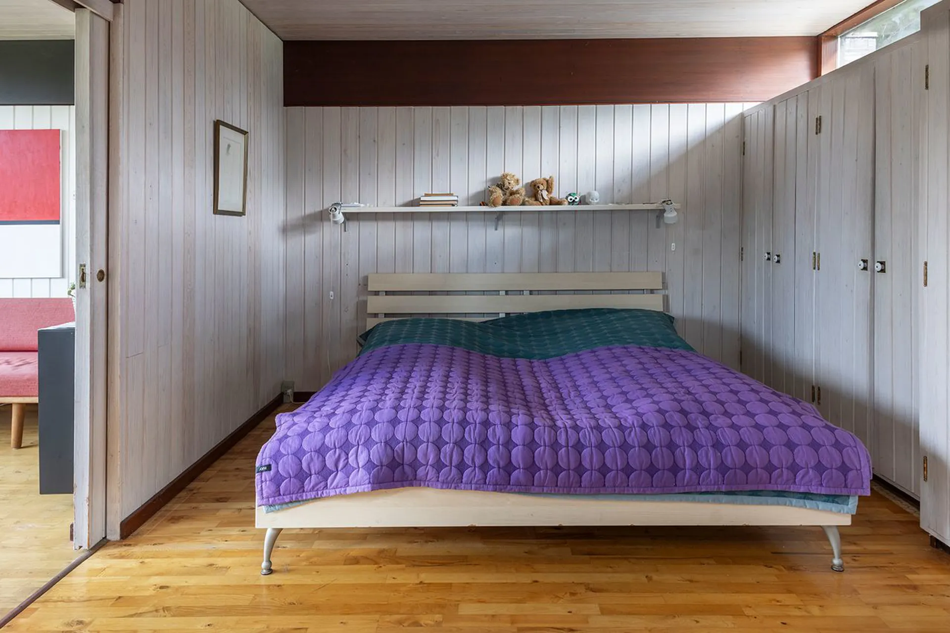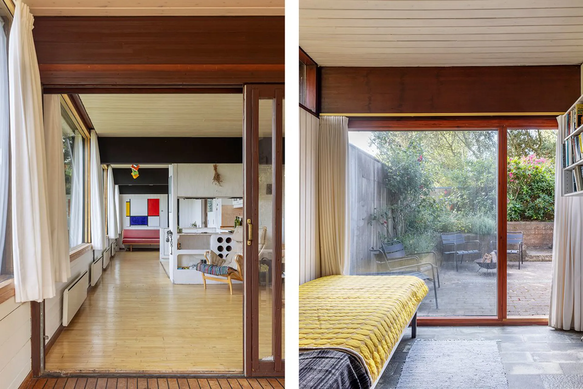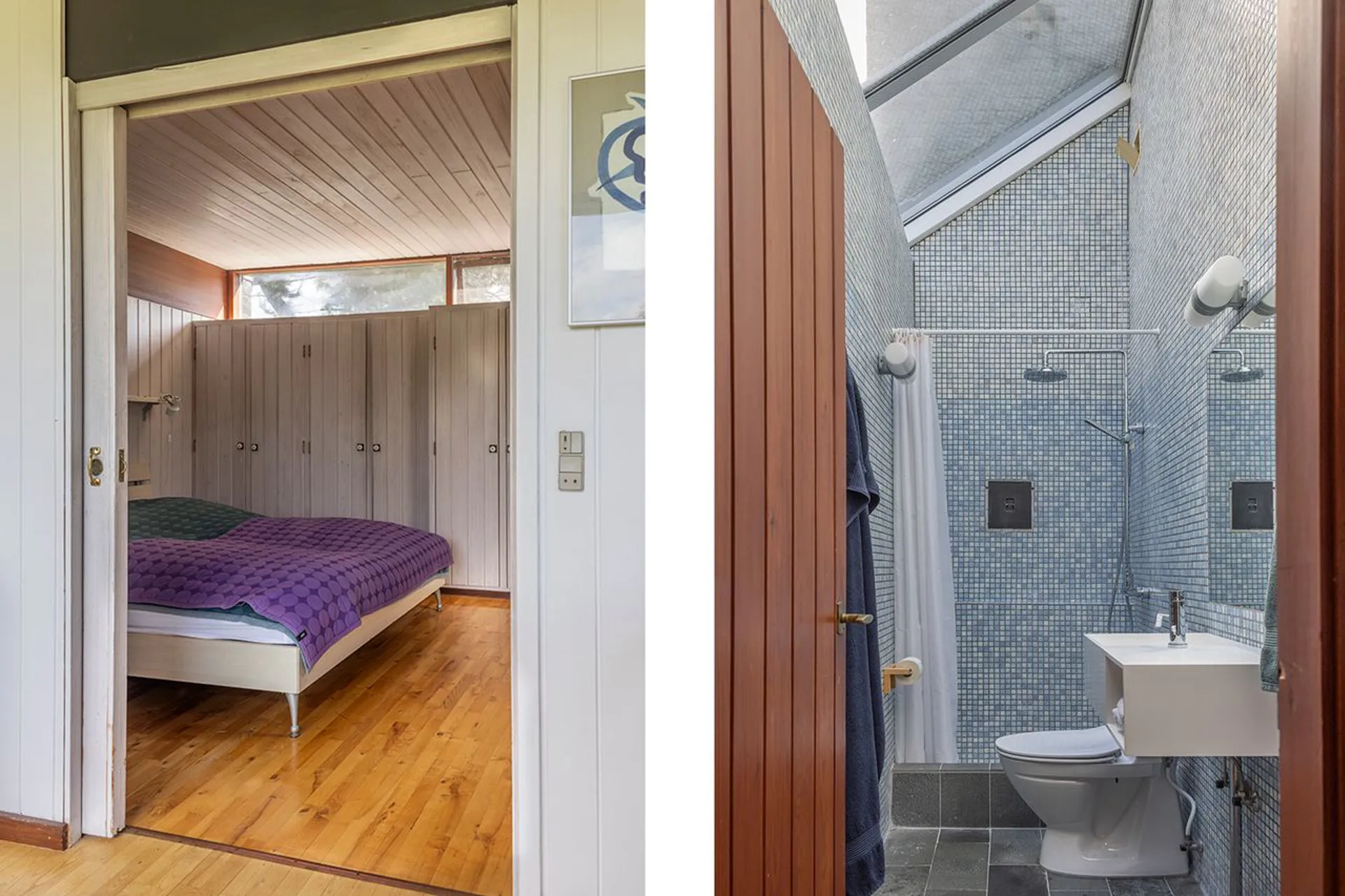 Og det står lige så smukt, som da det blev tegnet. Planløsningen og materialerne består, fordi det gennem årene er blevet passet på og elsket. Hævet over terrænet, vendt mod syd, med store vinduespartier, der fanger solen hele dagen. Naturen tillades at blive en nærgående gæst i huset. Lige der. Lige foran - og lige rundt om. Sådan er det her - naturligt naturrigt.