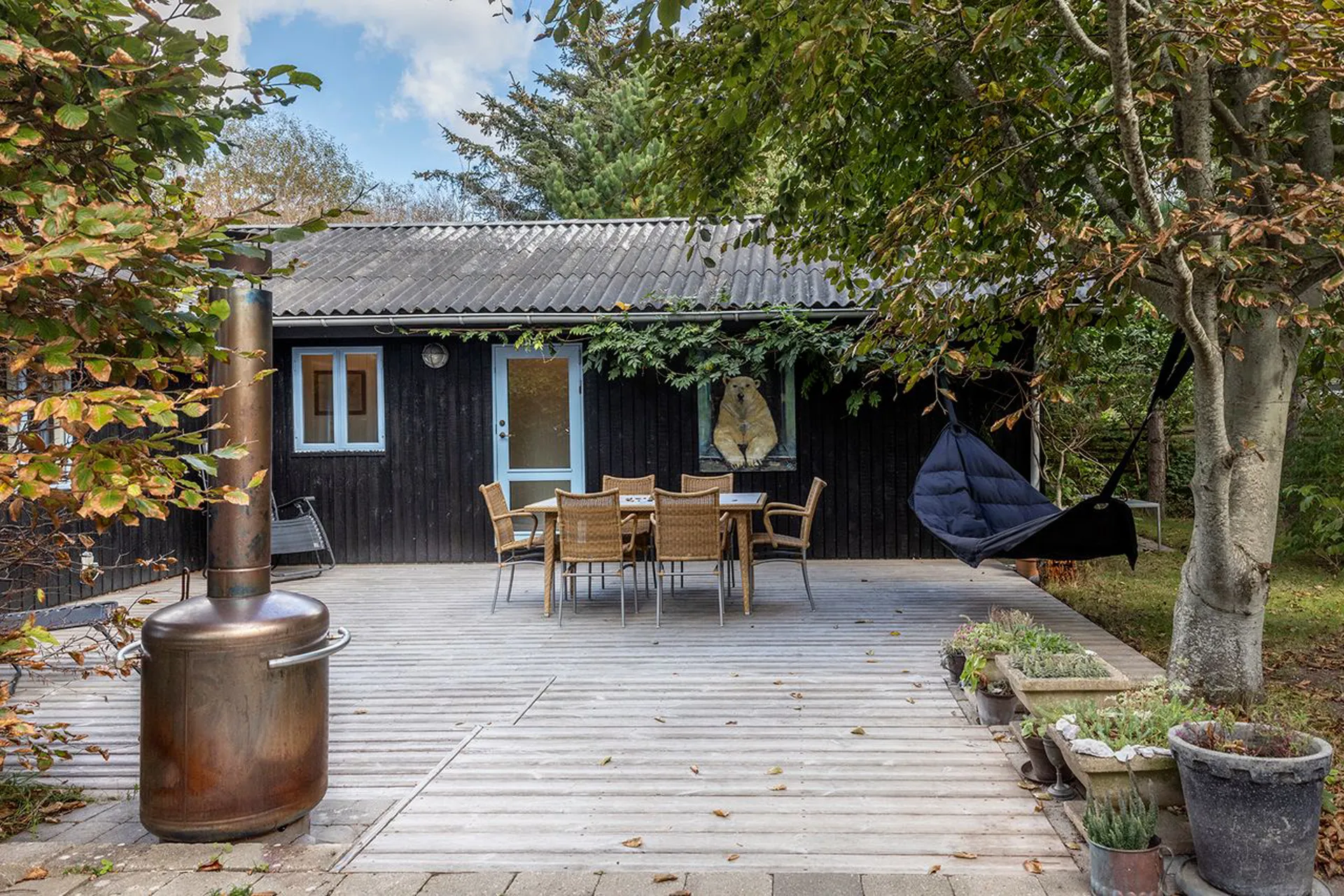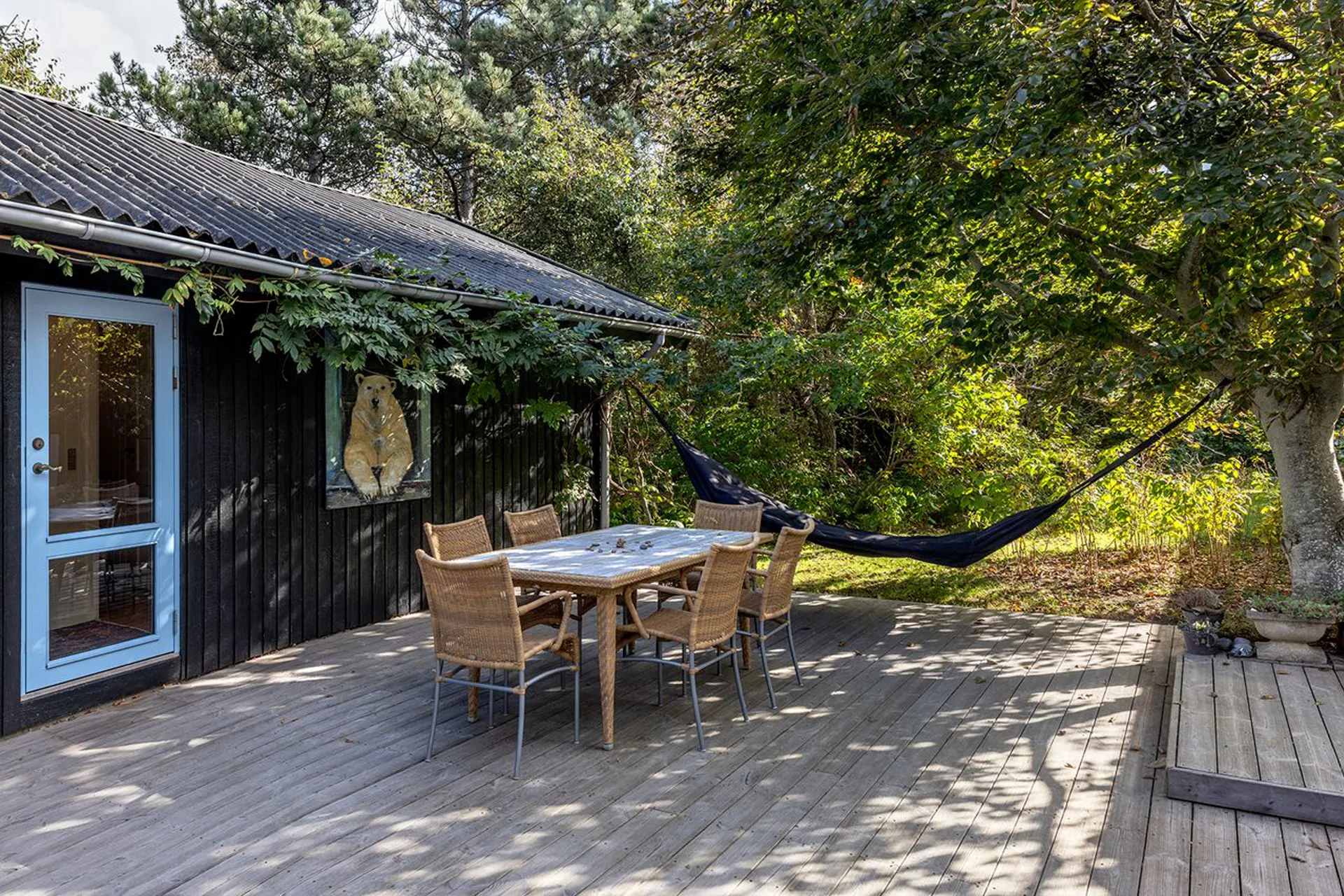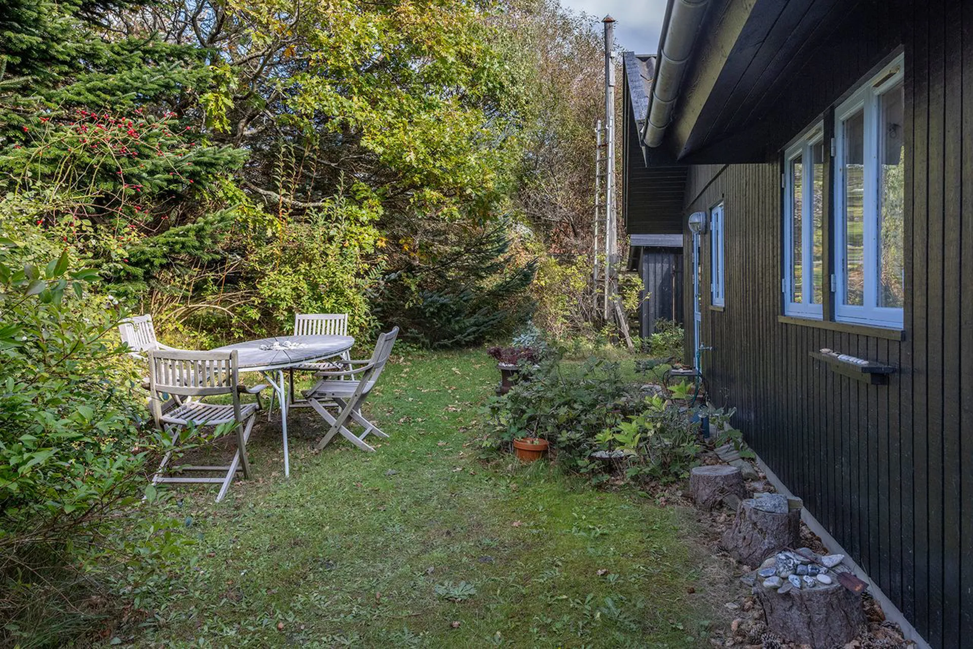 Dette er et ægte sommerhus. Sådan, som man forestiller sig det, hvis man er en ægte romantiker. Stemningen og omgivelserne er magiske, og solen finder sin vej hele dagen til de forskellige kroge. På en eller anden helt specielt måde, så er alt hvad man kigger på fra dette udvalgte sted ganske enkelt bare enormt skønt.