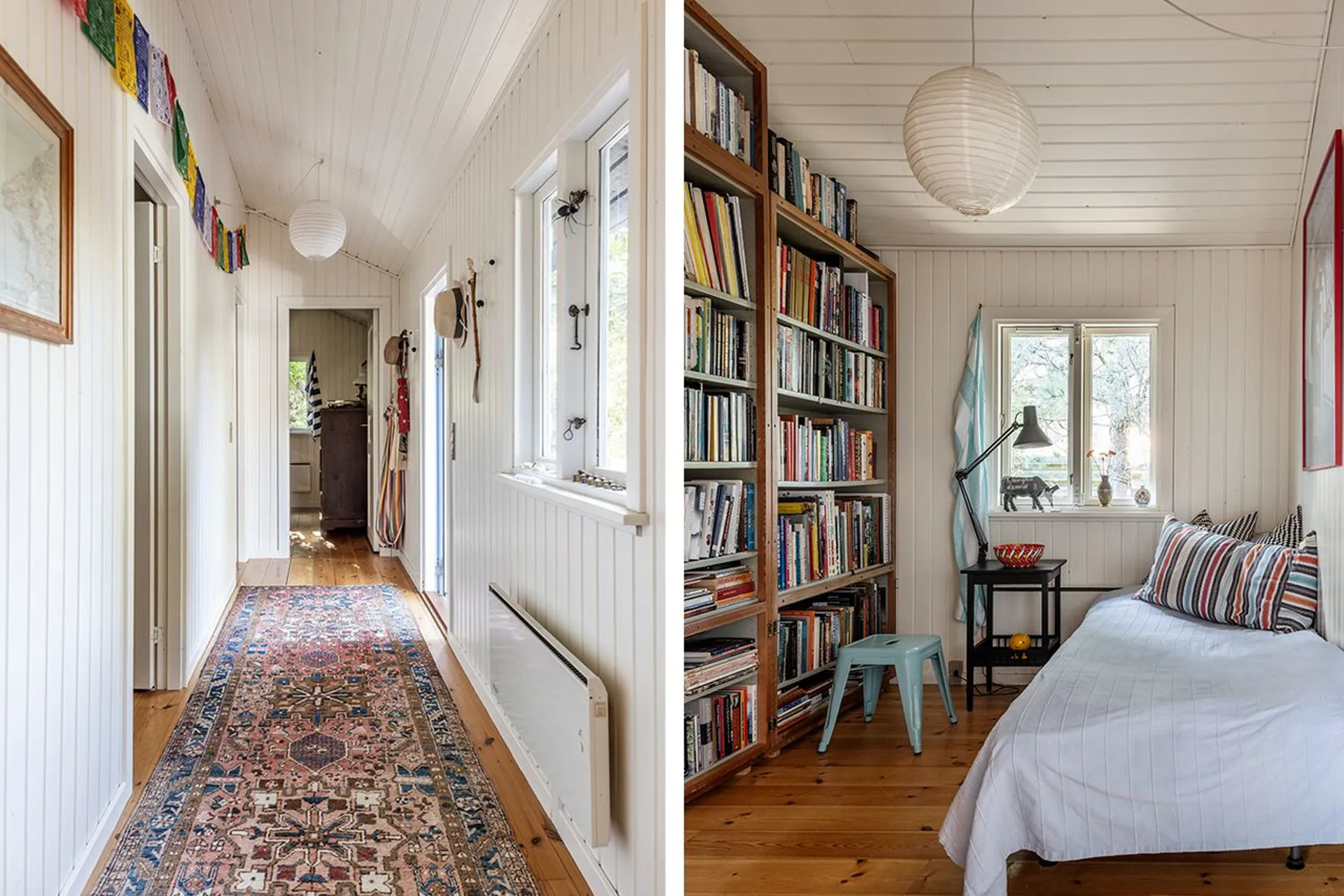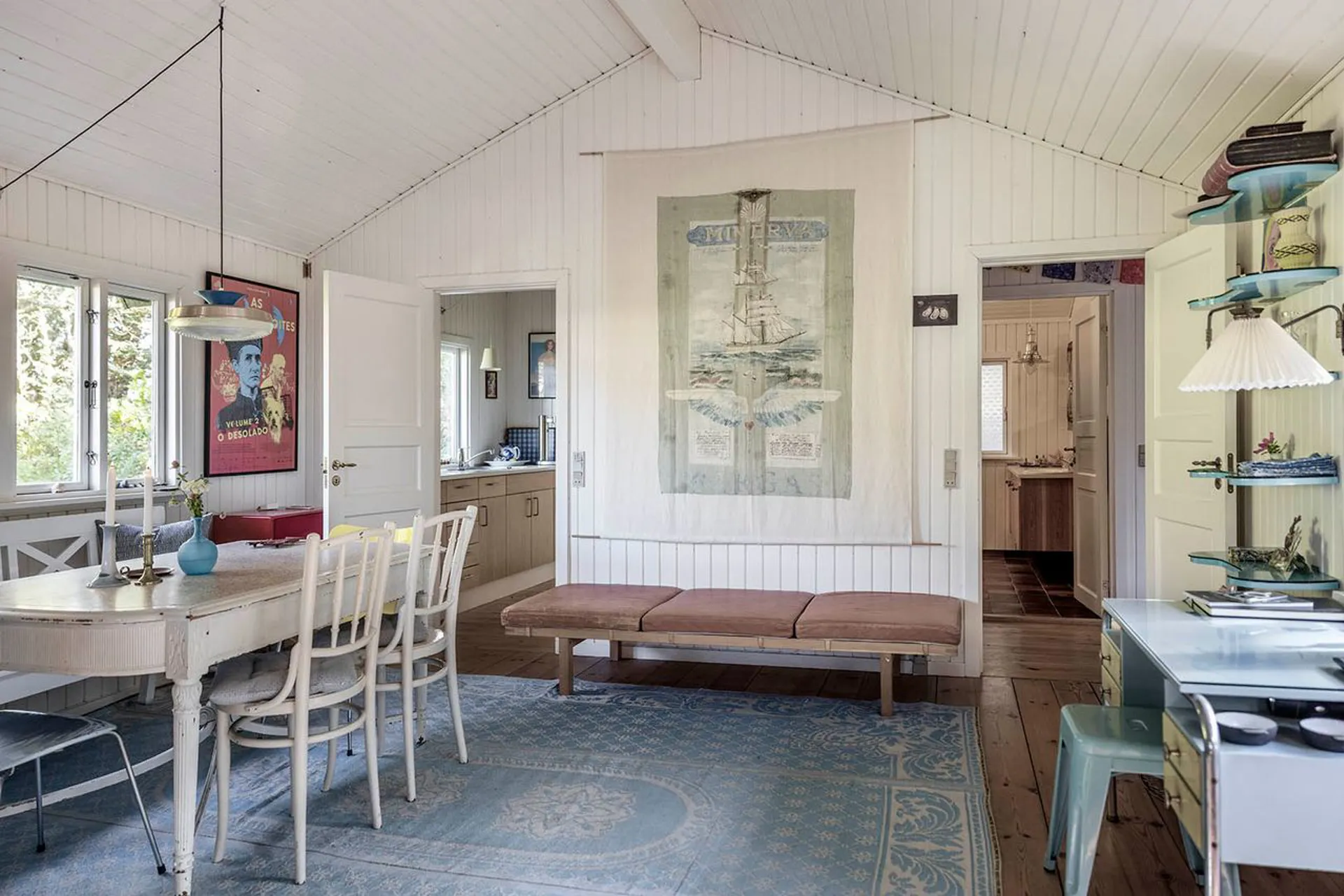 samler sig om et smukt højloftet alrum med loft til kip, herfra er der direkte udgang til