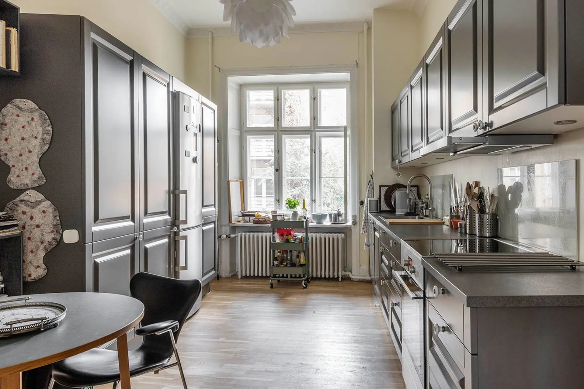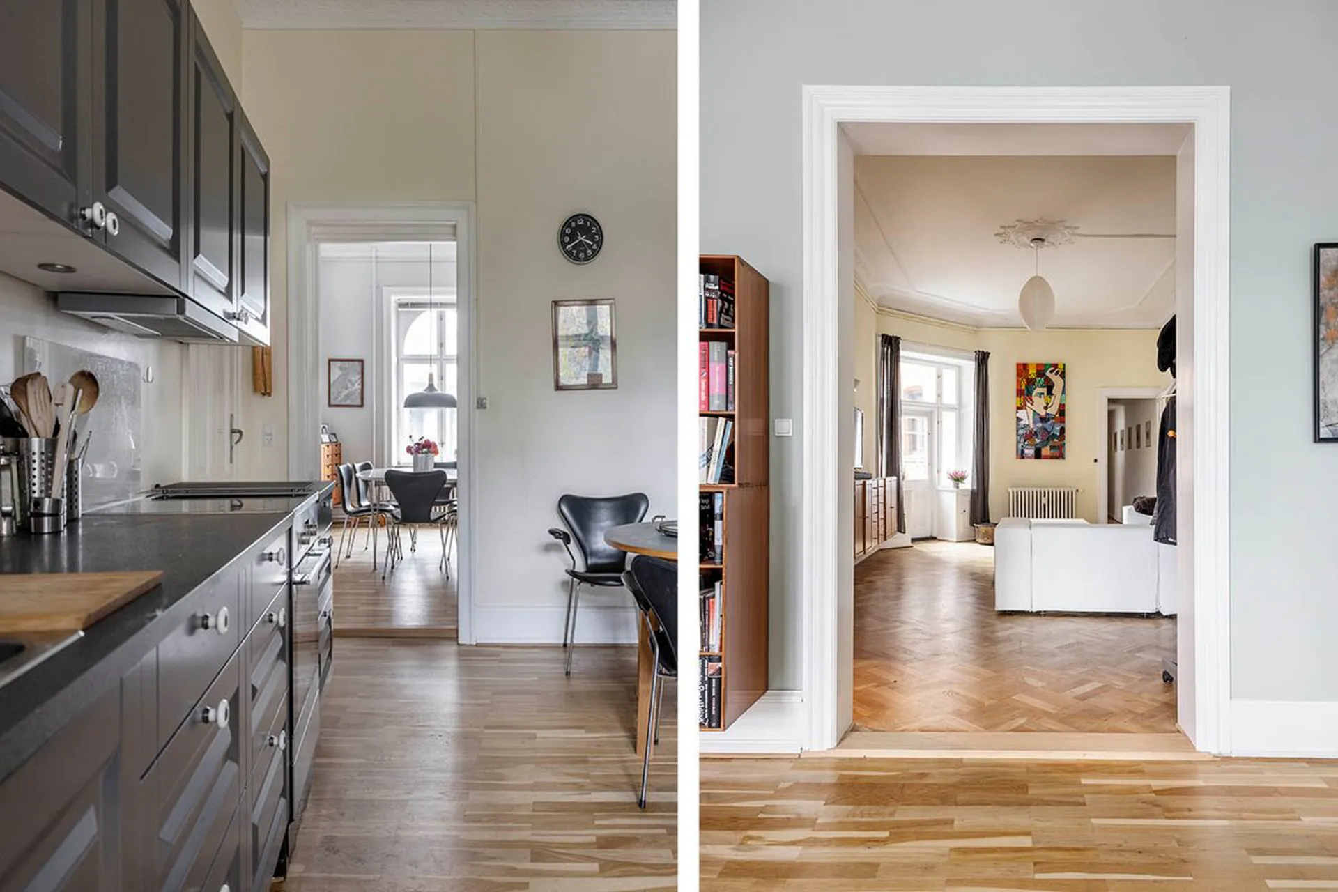 Lejligheden er blevet nænsomt restaureret efter at have tjent som lægepraksis i adskillige år. Der er blandt andet blevet etableret et badeværelse og køkken, som begge fremstår smagfulde og i nydelig stand. Lejligheden fortjener helt rimeligt den sidste opdatering for at nå sit fulde potentiale, og den giver i udgangspunktet nogle unikke og fantastiske rammer for at etablere sig i en af de mest vidunderlige boliger på Østerbro.