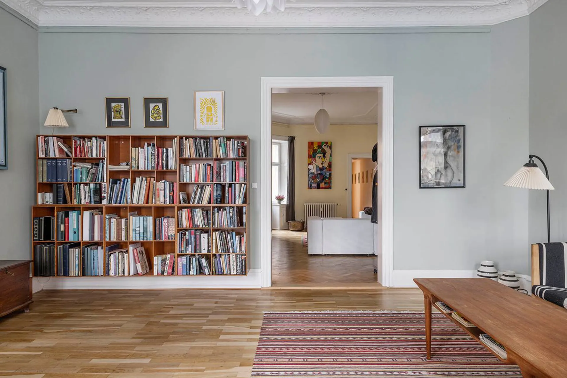 Lejligheden er indrettet med entré, der fører til køkken og den oprindelige spisestue – herfra er der adgang til lejlighedens øvrige to store stuer en suite, hvoraf den ene er en suite med køkkenet. Fra lejlighedens oprindelige spisestue er der en fordelingsgang til tre soveværelser og lejlighedens to badeværelser. I lejlighedens bageste arealer er der mulighed for at indrette yderligere værelser eller et stort værelse med badeværelse og walk-in, hvor der tidligere har været køkken og bryggers.