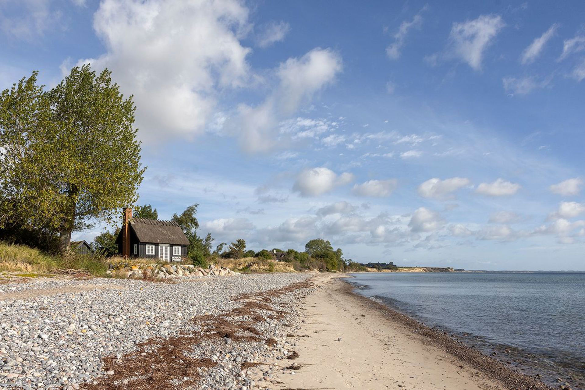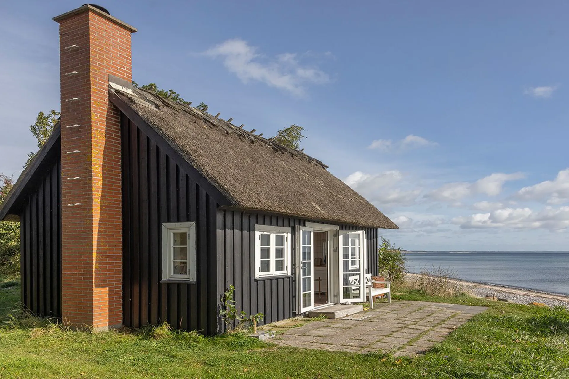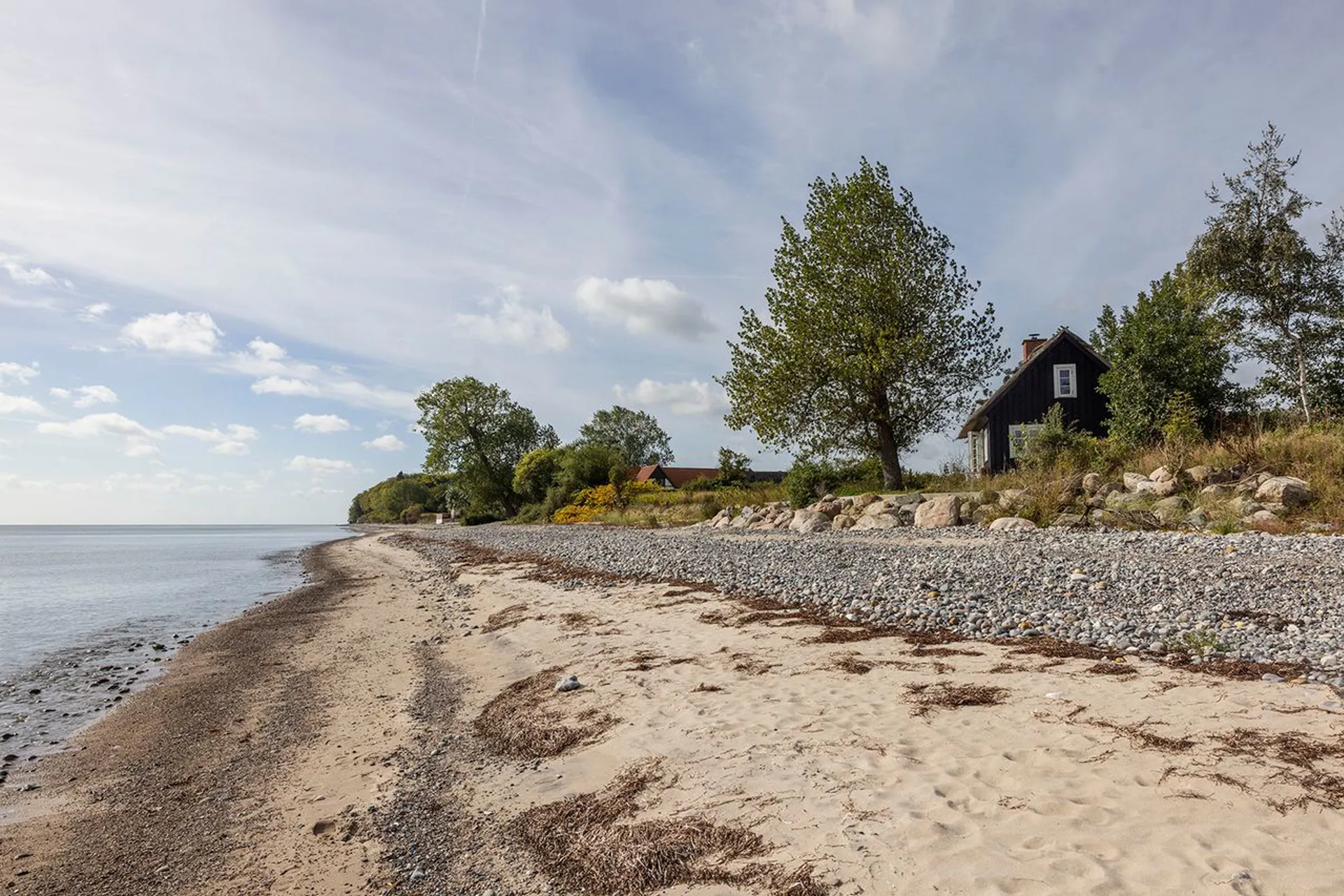 Nogle huse ligger tæt på vandet - dette spejler sig i det. Lige dér i vandkanten. Kun adskilt af en elegant anlagt kystsikring, der sætter niveau mellem hus og hav.