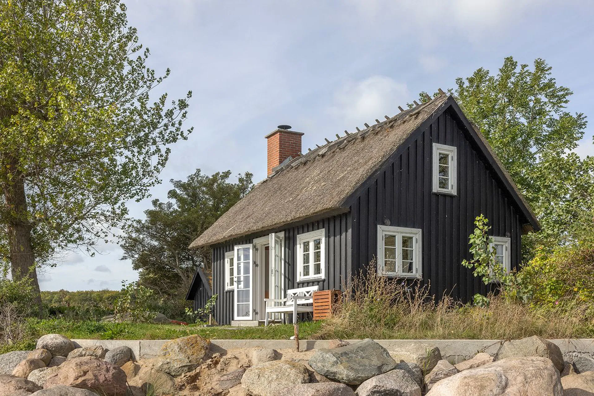Ikke mange kender Rytsebækvej og slet ikke, at dette vidunderlige hus ligger lige her. Tæt på Hårbølle Havn, med udsigt mod Møns Klint, i Stege, på evigt smukke Møn. Men her står et sort træhus med blikket rettet mod horisonten. Et sommerhus fra 1985 - beskedent i størrelse, kun 27m 2 (BBR) + hems, men enormt i herlighedsværdi.