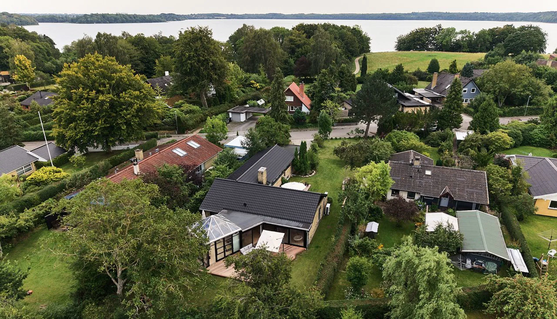 Der findes adresser, hvor man straks mærker, at tempoet sænker sig. Hvor lyden af vinden i træerne og søens glimten er nok til at trække skuldrene ned. Skovbakken i det eftertragtede område, Stavnsholt, er sådan et sted – og nummer 69 er et hus, der bærer hele denne ro med sig, helt ind i stuerne.