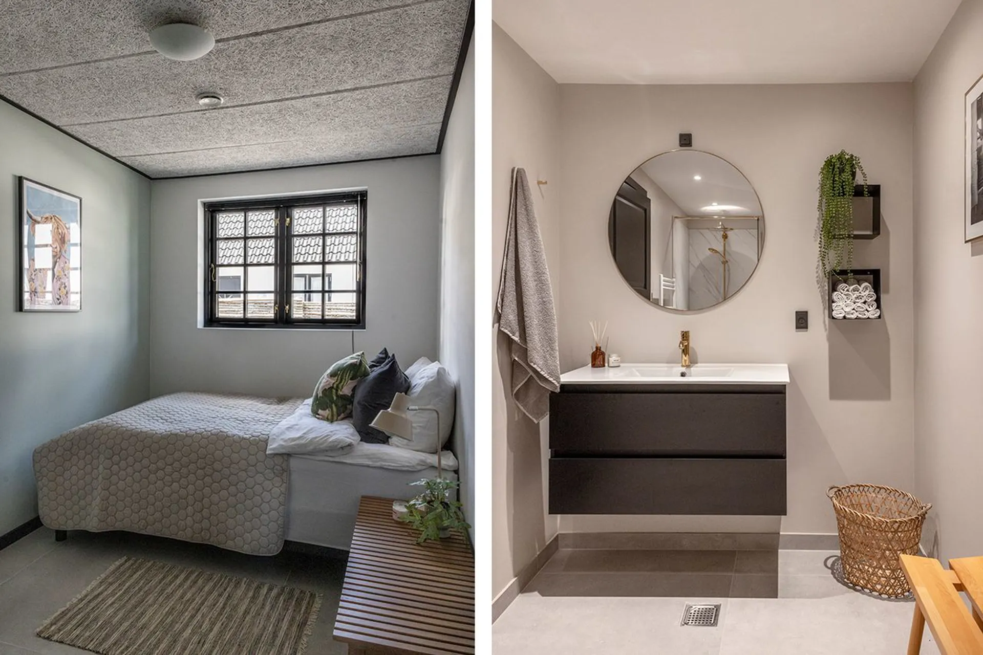 Huset er praktisk opdelt i to værelsesafdelinger med hemse – perfekt til flere familier eller generationer, der vil være sammen og hver for sig.