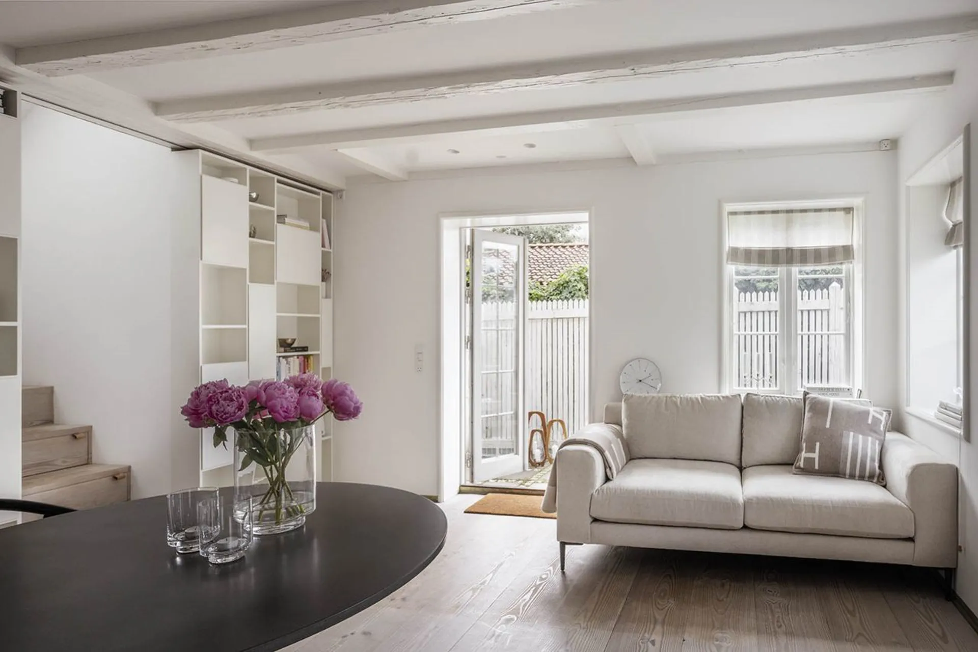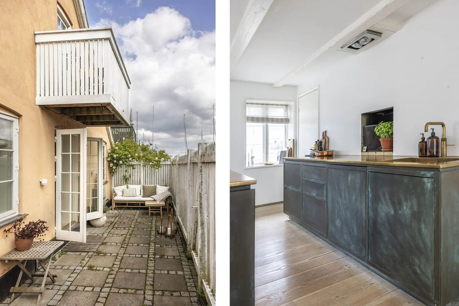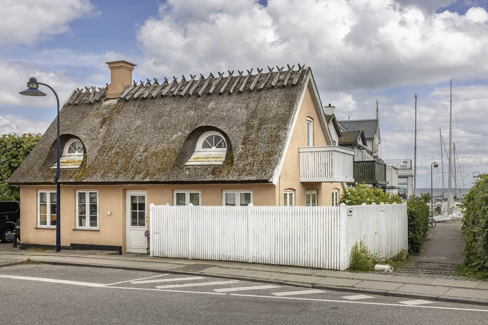 Med 88 m2 fordelt på to plan er det ikke et hus til den store og pladskrævende familie; nok snarere feinschmeckere, der søger autenticitet og hyggelige rammer om det gode liv i det gamle fiskerleje. Indenfor er huset nænsom ført op til nutidens standarder og komfortniveau med flot lysindfald og en god udnyttelse af kvadratmeterne. Stueetagen består af et stort køkken-alrum med direkte udgang til en sydvendt terrasse, der er lukket af til vejen. Køkkenets flotte messingbordplader er et nik til de maritime omgivelser, og samme materiale går igen på badeværelset. På førstesalen er det to lyse rummelige værelser, et toilet og en walk-in garderobe. Fra det ene værelse er der udgang til en sydvendt altan, hvorfra man kigger direkte ned til havnen og sundet.