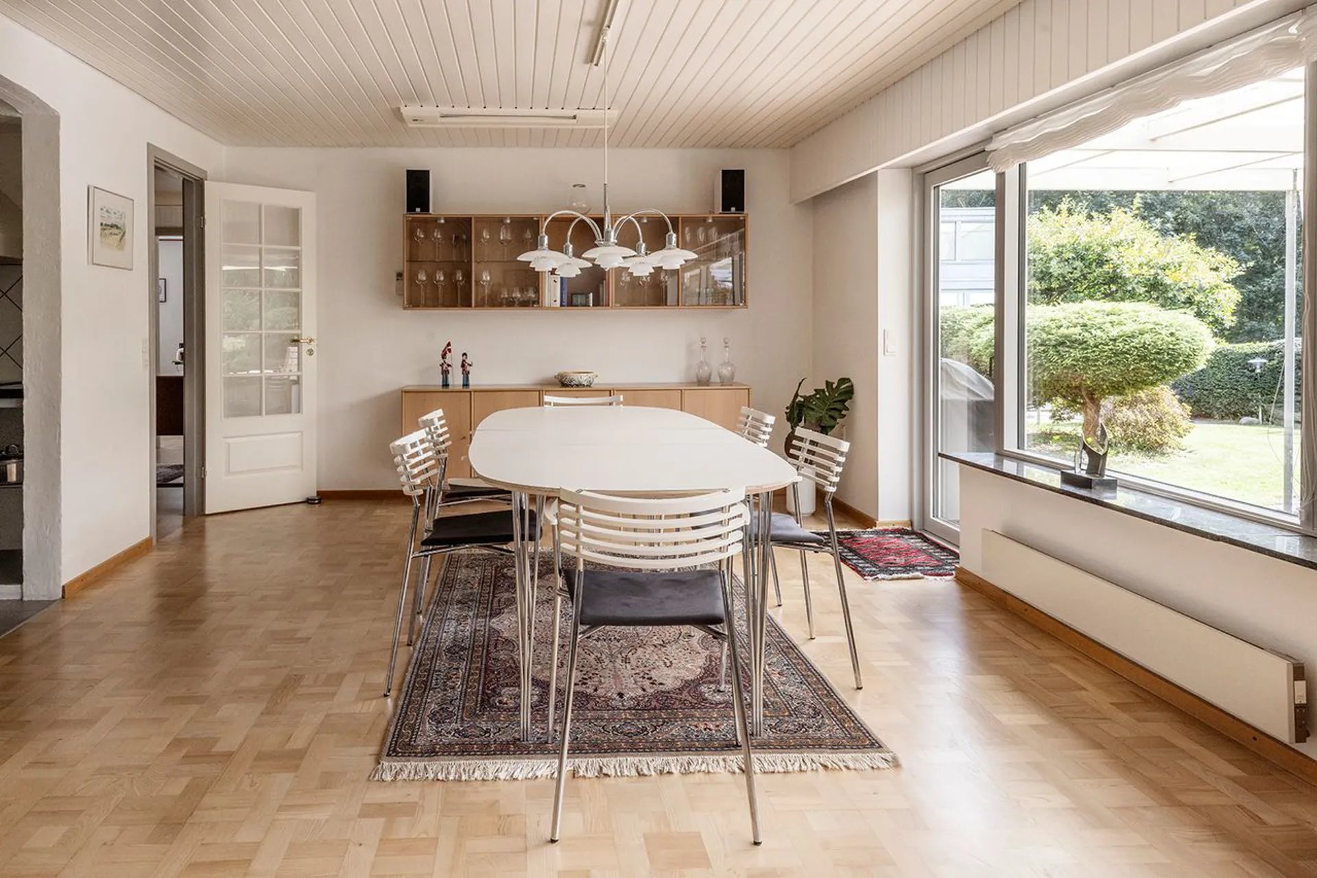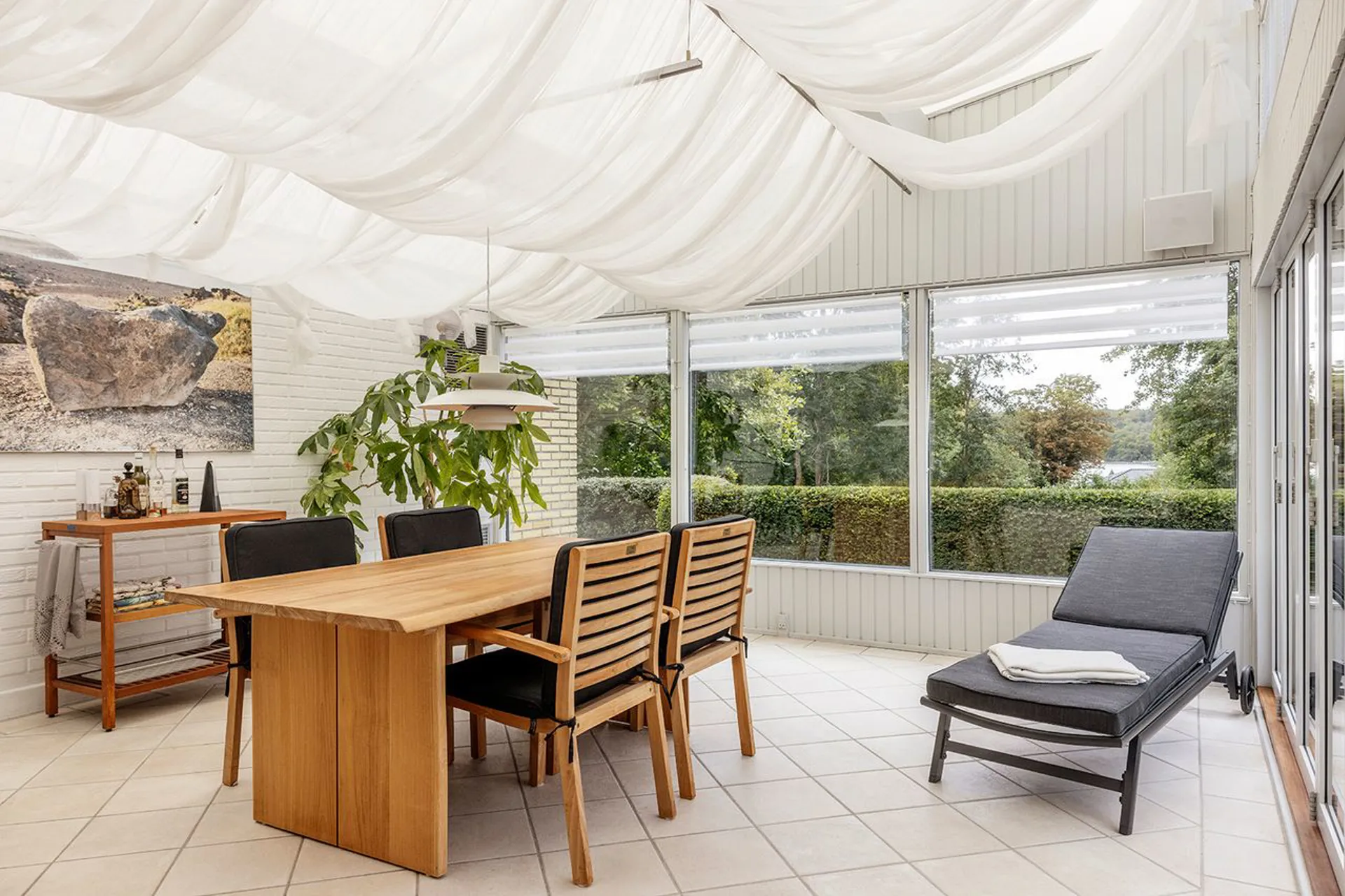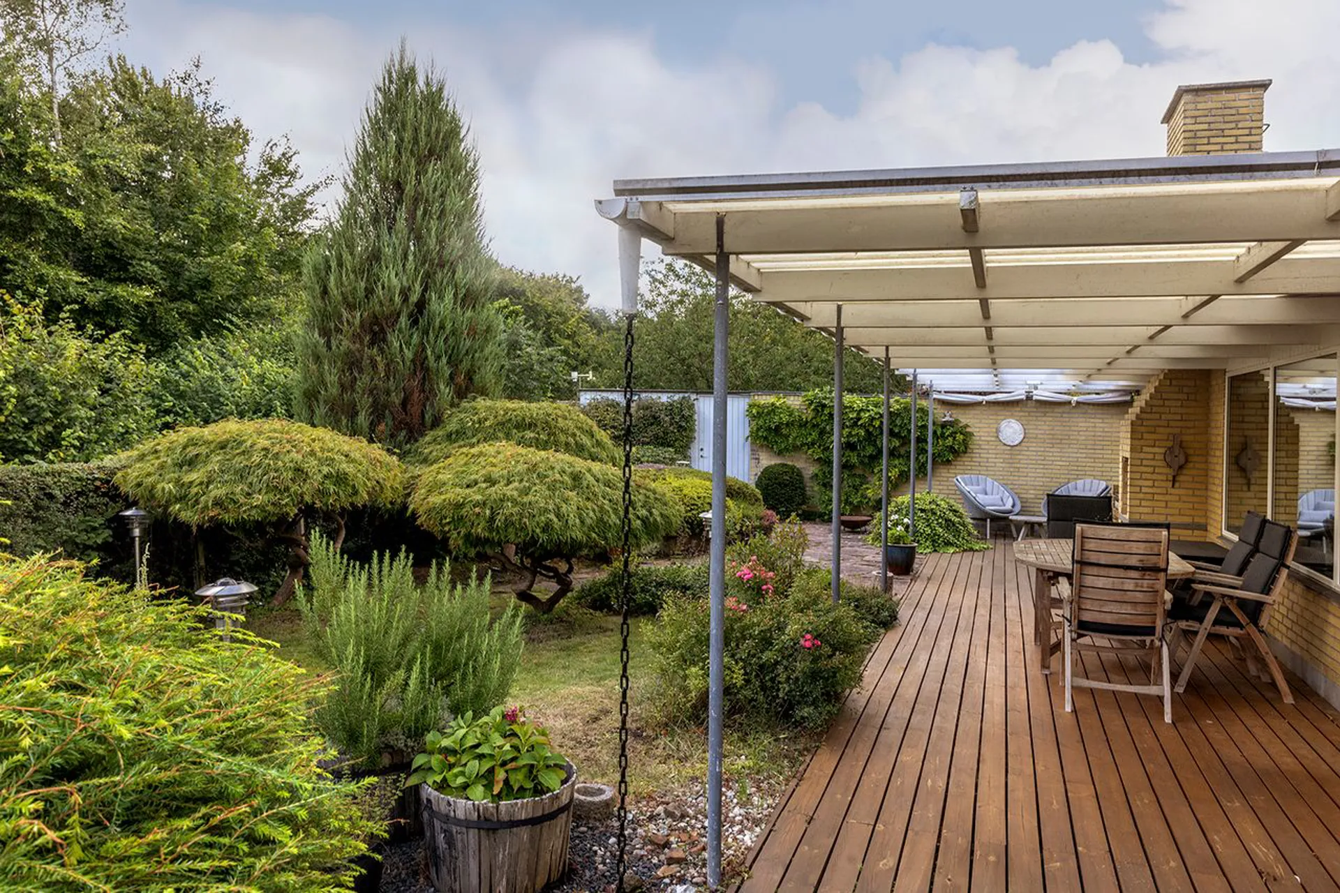 Med en velsignet placering mellem by og sø, får man her det hele, lidt til og meget mere. Der er kun ganske få minutters gang til velrenommerede skoler og institutioner, legepladser, sportsfaciliteter og Farum Bytorv, der bugner med shoppingmuligheder, caféer og spisesteder. Nemt og bekvemt. Vender man snuden den anden vej er villaen nærmest pakket ind i grønt, omringet af fredskov. En ekstraordinært smukt beplantet have med velsoigneret plæne, busk og træer, nogle endda så elegante, de fremstår som grønne kunstværker.